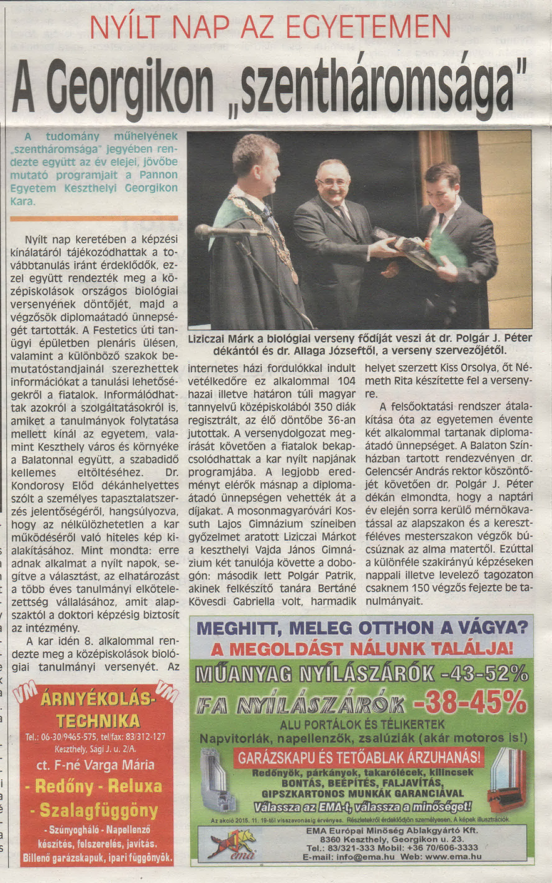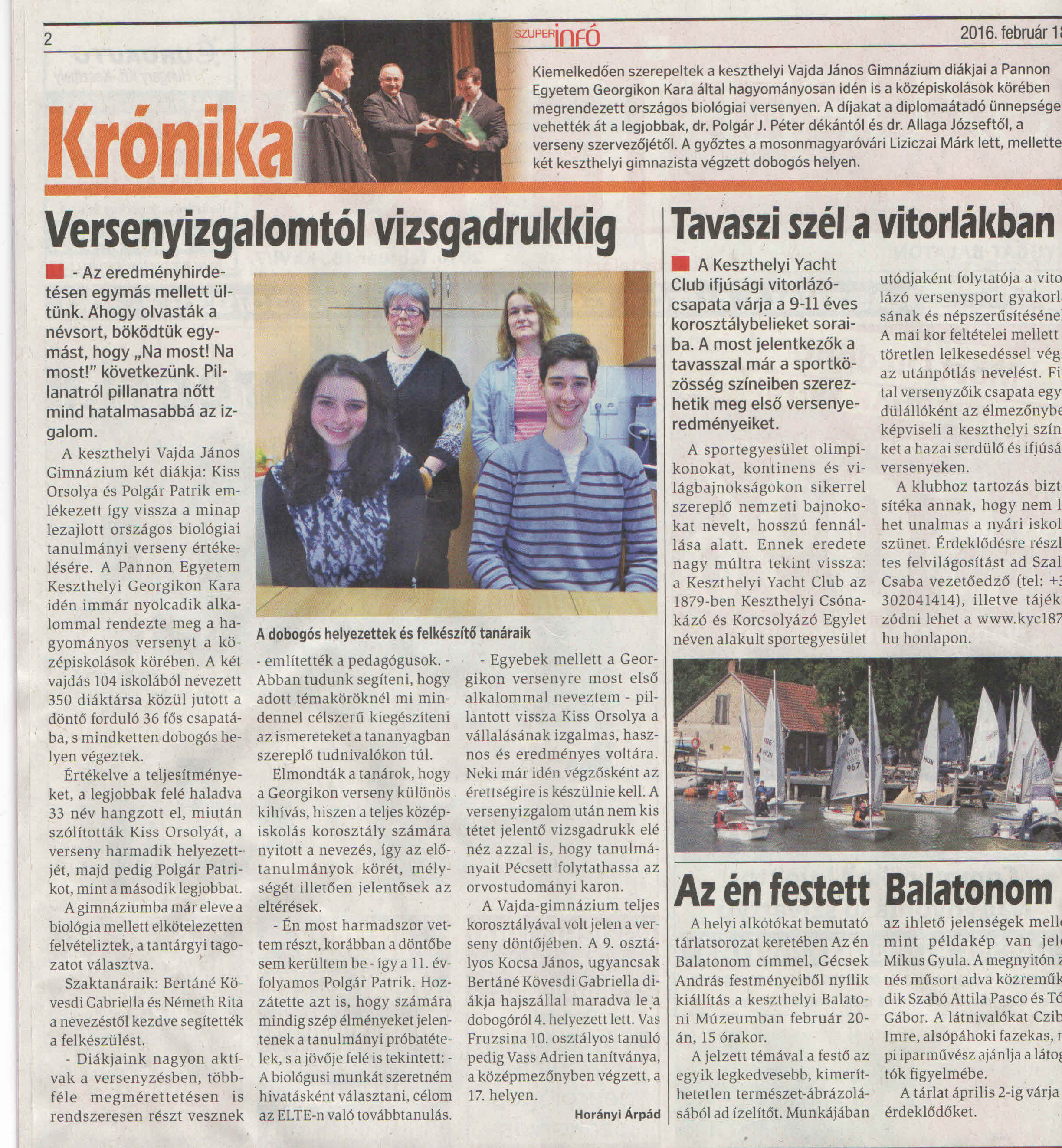 Georgikon Biológia Tanulmányi Verseny 2015/2016